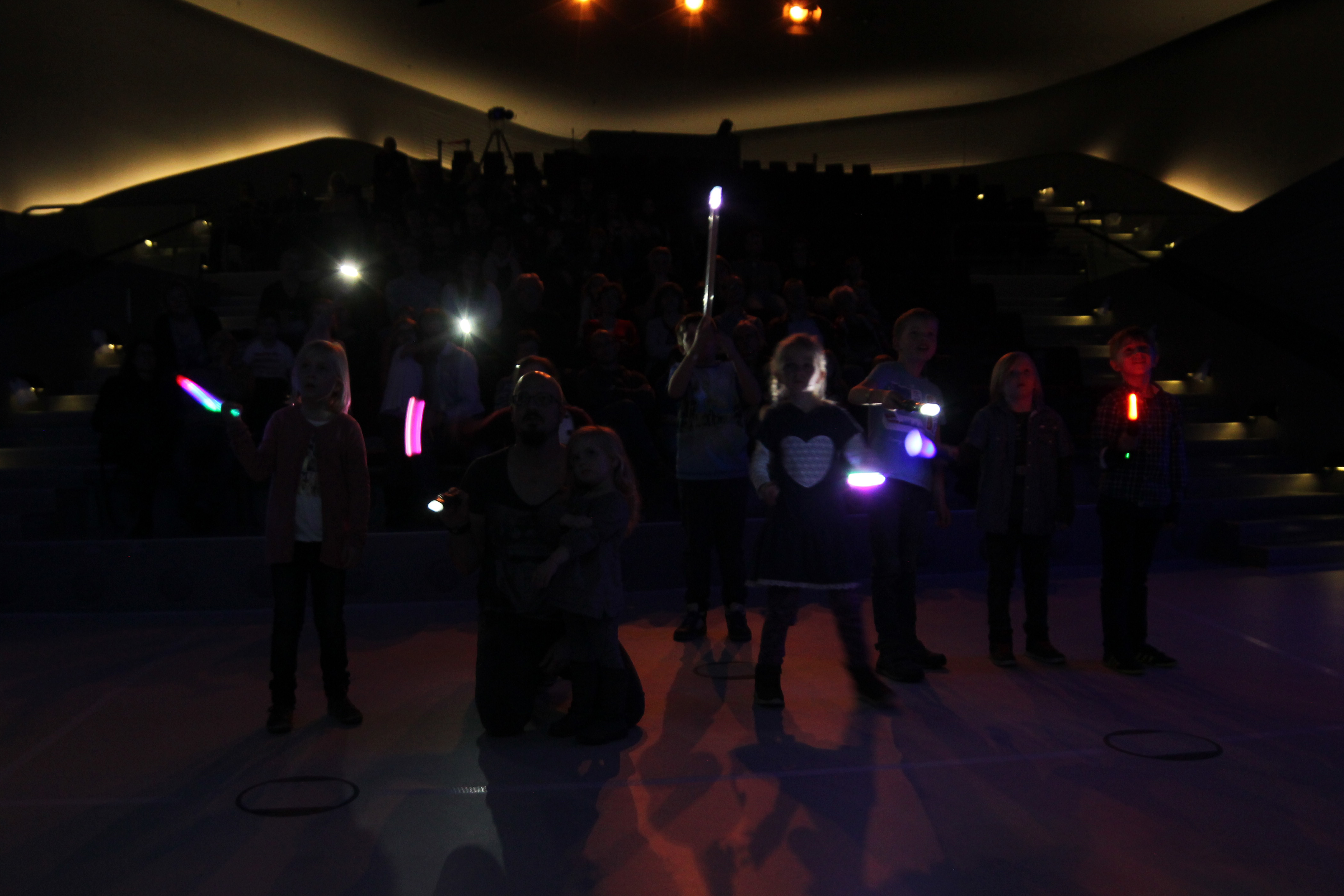 An diesen zwei Tagen konnten die Besucher, u.a. interaktive Schulklassen und Familien selbst zu Licht-Künstlern werden.Till Pöhlmann empfing die Gäste mit einer kurzen Präsentation der Bandbreite seiner Künste, wie Hochrad-Artistik, Foto-Lightpainting und Licht-Jonglage und leitete über zur Enstehung und Funktionsweise von Video-Lightpainting.